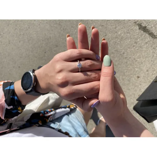 My fiancé proposed to me with this beautiful 3-carat ring. He also told me later that his experience was great, which only makes it better. We have already started telling other people about these beautiful rings!