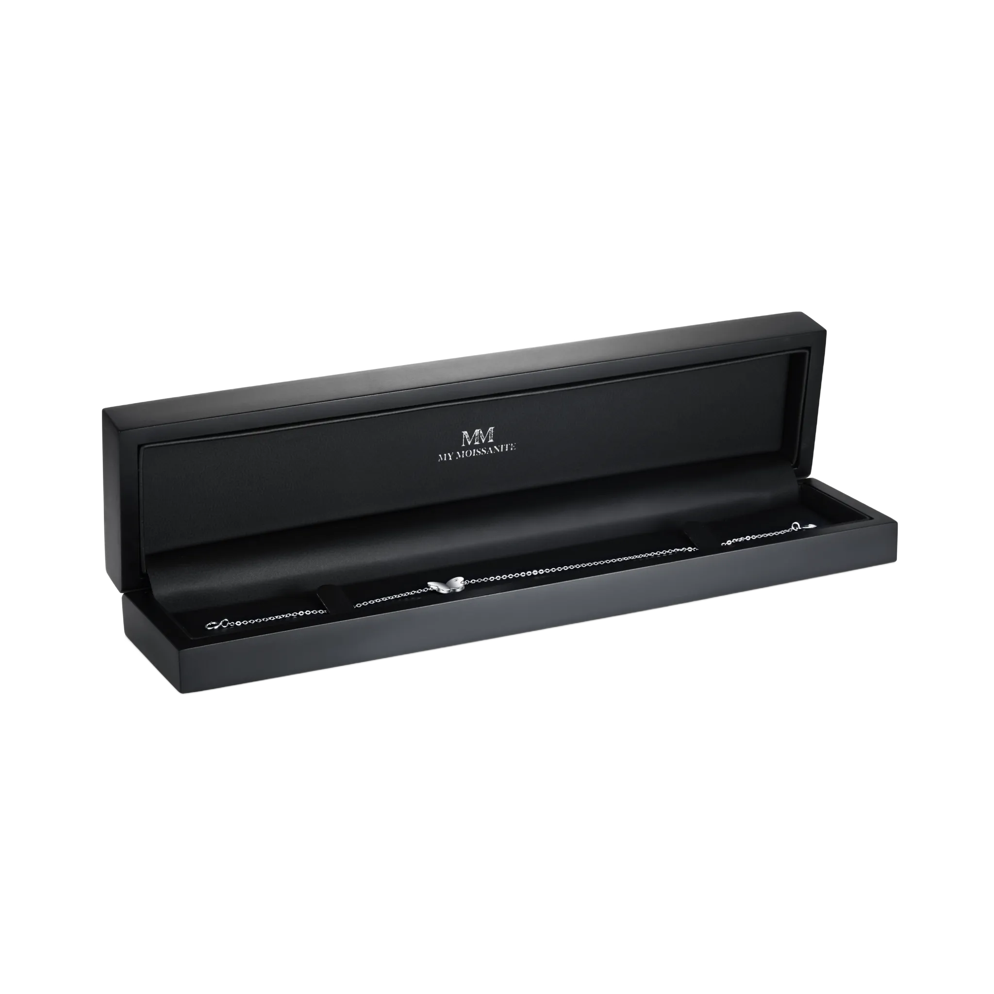Verleihen Sie Ihrem Look mit dem Papillon einen Hauch von Verspieltheit. Dieses Moissanit-Schmetterling-Charm-Armband besticht durch einen entzückenden Schmetterling, dessen Flügel mit einem glitzernden Moissanit-Stein besetzt sind. Es ist elegant mit einer verstellbaren Gliederkette gefertigt, die in einem sicheren Hummerverschluss endet. Das Armband lässt sich von 16 bis 21 cm anpassen und passt somit perfekt an Ihr Handgelenk. Kombinieren Sie es mit unseren Ohrringen Butterfly Beauty oder Butterfly Drops für einen harmonischen Look.