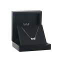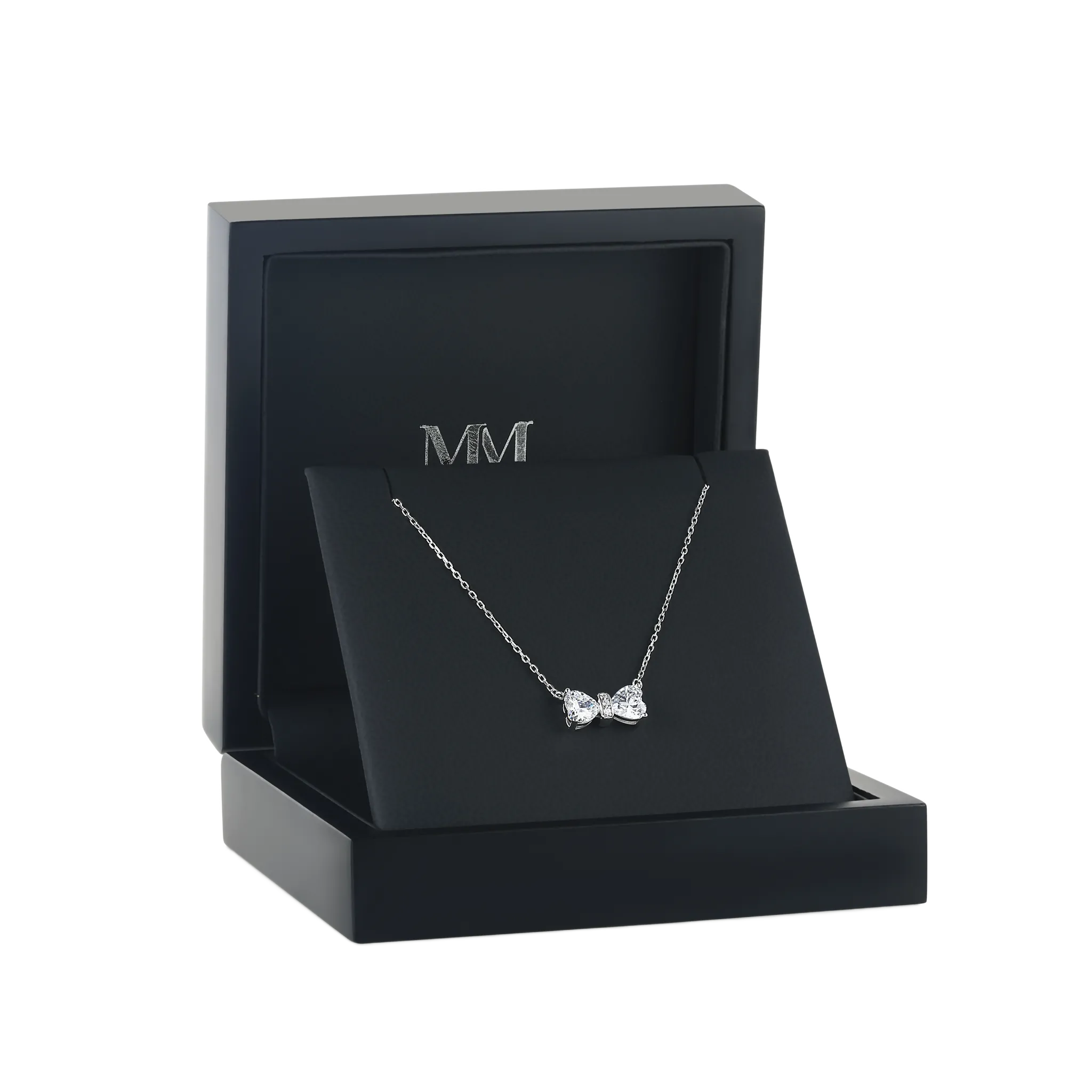 Die Pairle Halskette bietet symmetrische Eleganz mit zwei Moissanit-Steinen im Herzschliff, die elegant von poliertem Edelmetall umschlungen werden. Die zentrale Pflaster-Fassung fügt einen dezenten Glanz hinzu und macht diese Kette zu einem vielseitigen Zusatz für jedes Outfit. Die sicheren Fassungen sorgen dafür, dass jeder Moissanit-Stein optimal strahlt, was sie zu einem idealen Schmuckstück sowohl für den Alltag als auch für besondere Anlässe macht. Die gezeigte Kette hat eine verstellbare Länge von 40 cm mit einer zusätzlichen Verlängerung von 5 cm.