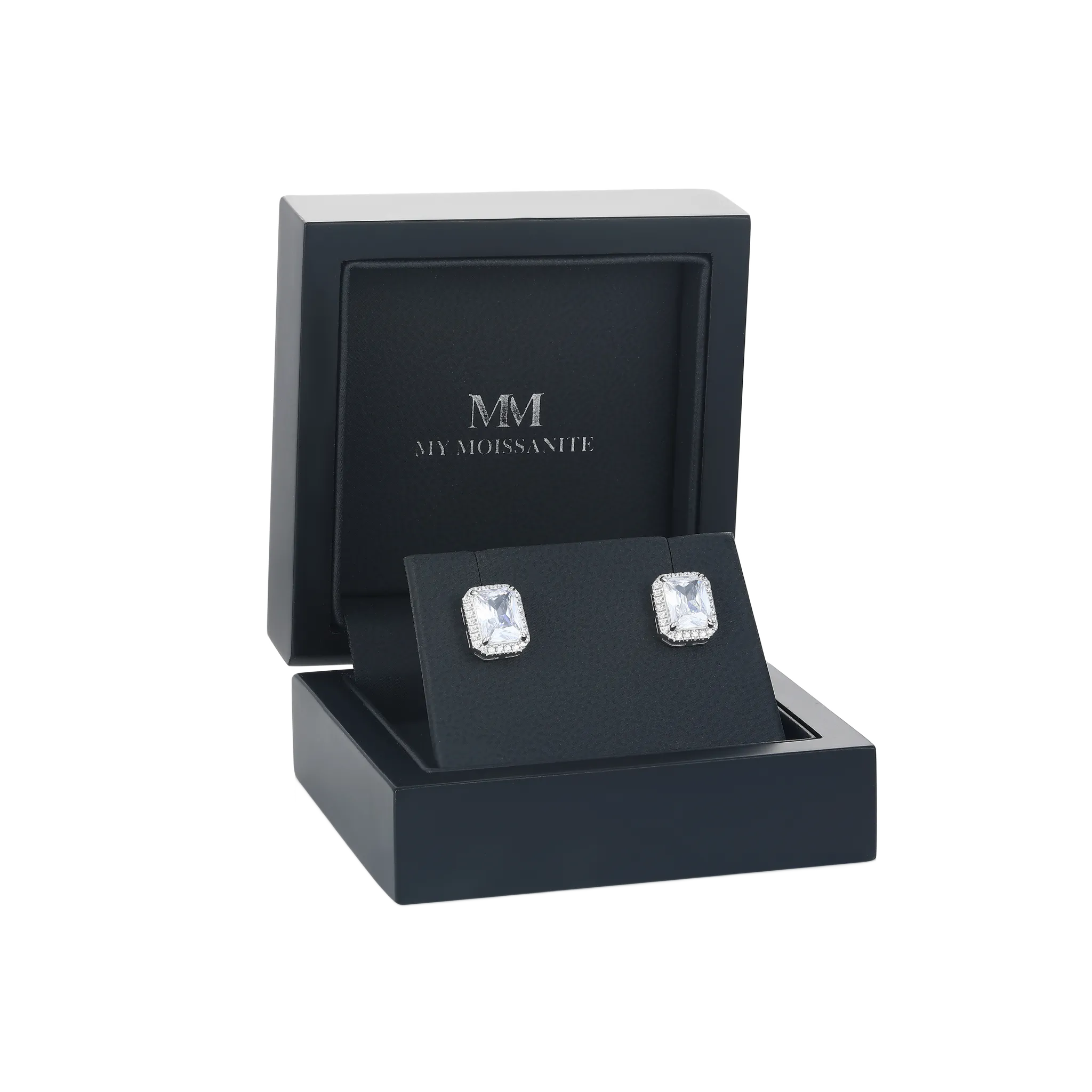 Erleben Sie die atemberaubende Schönheit dieser Ohrstecker mit Moissanit im Radiant-Schliff! Die einzigartigen Facetten kreieren ein blendendes Lichtspiel, das in einem Schmuckstück von unvergleichlicher Schönheit resultiert.