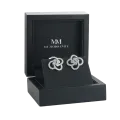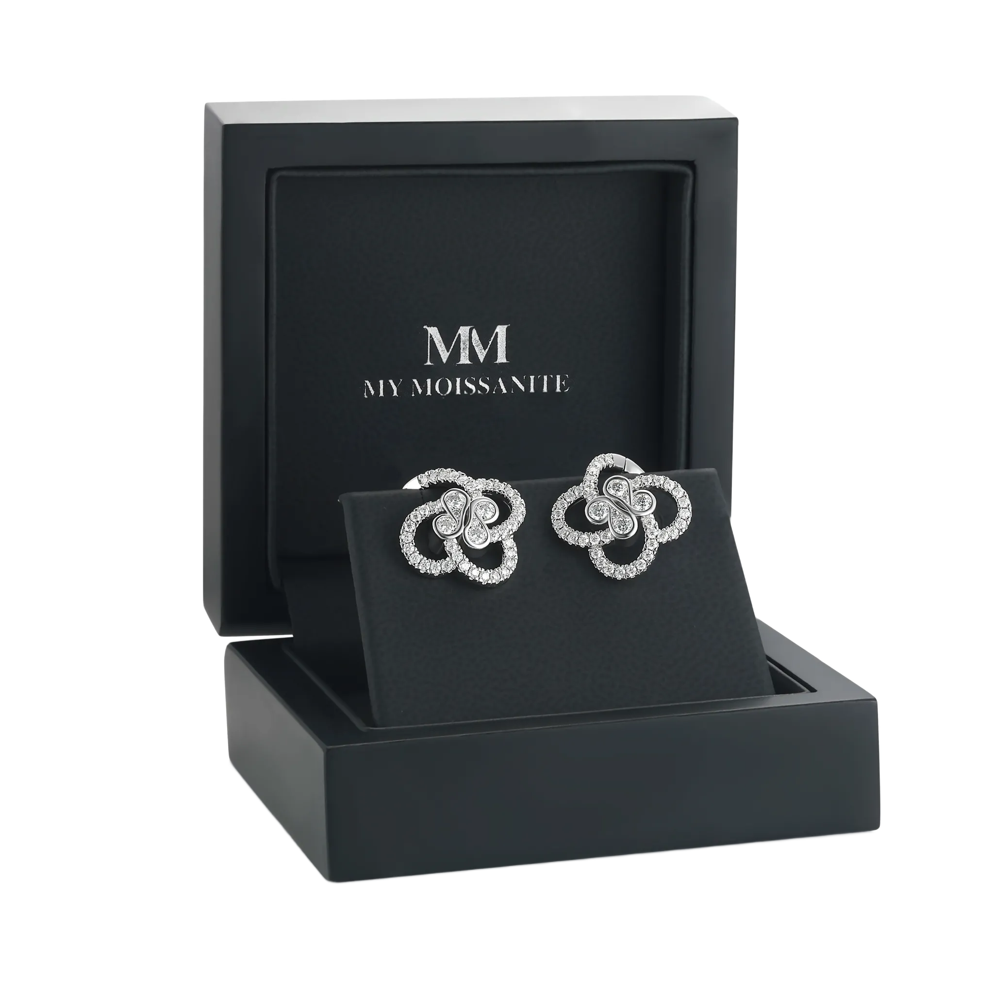 Die Vortexia Ohrringe bezaubern mit einem floralen Design, das vom unvergleichlichen Glanz des Moissanits umspielt wird. Sie zeichnen sich durch ein kleeblattähnliches Zentrum aus und sind von konzentrischen Kreisen sorgfältig angeordneter Moissanitsteine umgeben, die Handwerkskunst mit dem Zauber der Natur verschmelzen lassen. Ihr symmetrisches Design und die im Pavé-Stil angebrachte Leuchtkraft verleihen ihnen eine zeitlose Eleganz, die sie zum perfekten Accessoire für jeden Anlass macht. Die Vortexia Ohrringe wurden mit Blick auf Komfort und Sicherheit gefertigt und stellen den Schnittpunkt von Raffinesse und strahlender Brillanz dar.